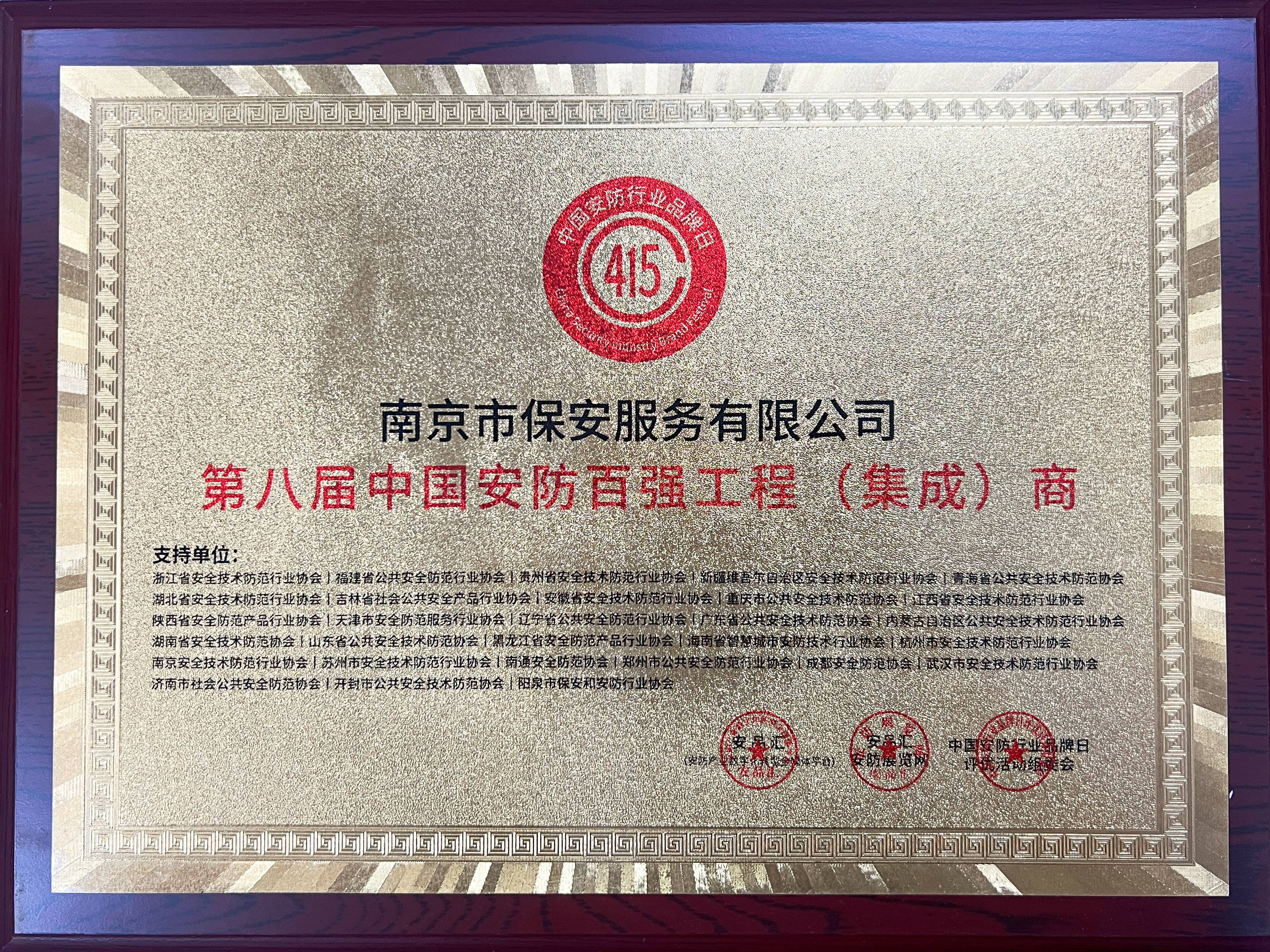 第八屆中國(guó)安防百?gòu)?qiáng)工程(集成)商榮譽(yù)稱(chēng)號(hào)