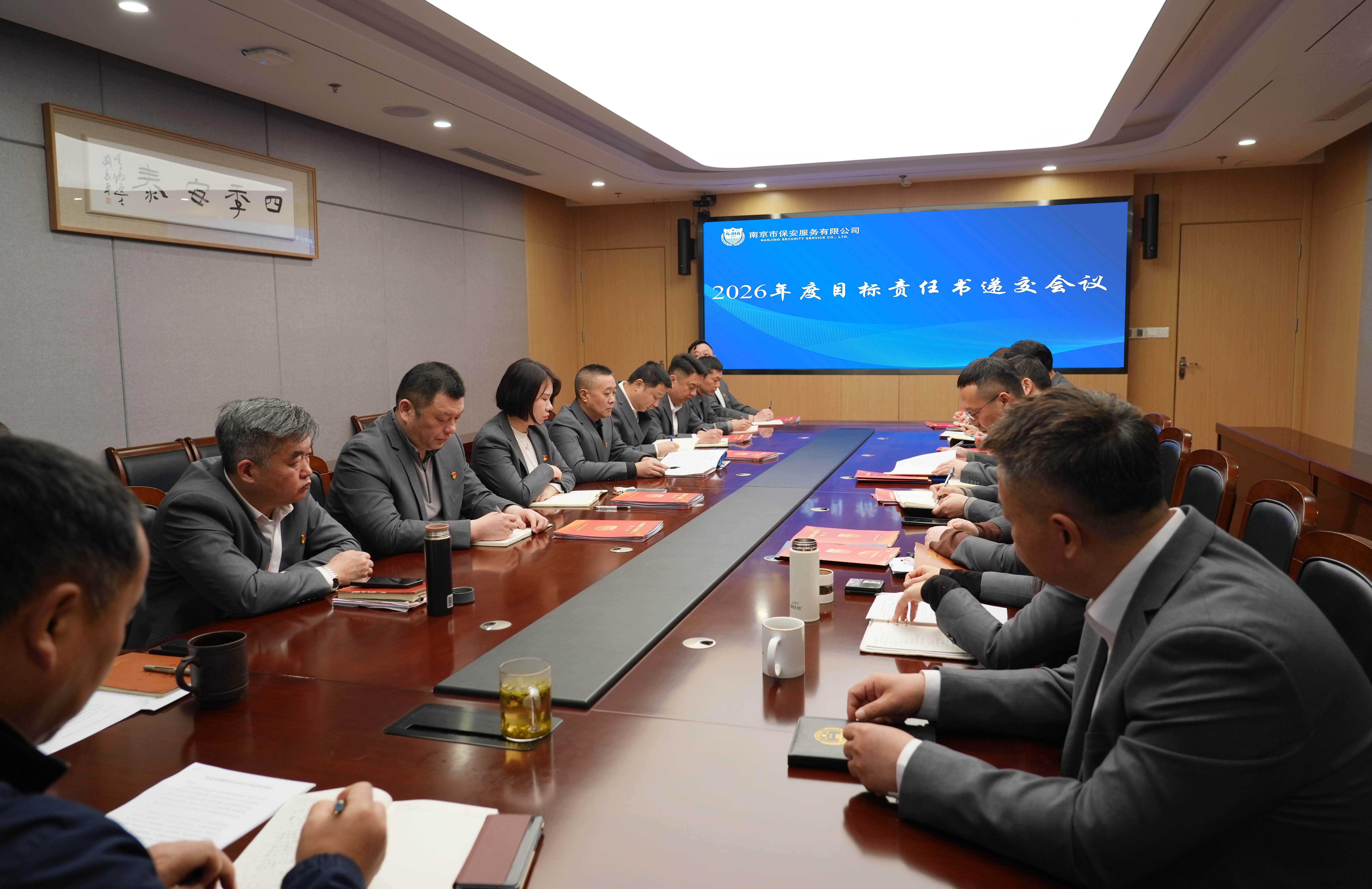為進(jìn)一步統(tǒng)一思想、壓實(shí)責(zé)任,凝聚推動公司高質(zhì)量發(fā)展的合力,3月18日,南京市保安服務(wù)有限公司(以下簡稱“南京市?!保┱匍_2026年度目標(biāo)責(zé)任書遞交會議。公司領(lǐng)導(dǎo)班子、各部門負(fù)責(zé)人參加會議,以莊嚴(yán)的遞交儀式明責(zé)踐諾,為“十五五”開局之年的發(fā)展筑牢根基。